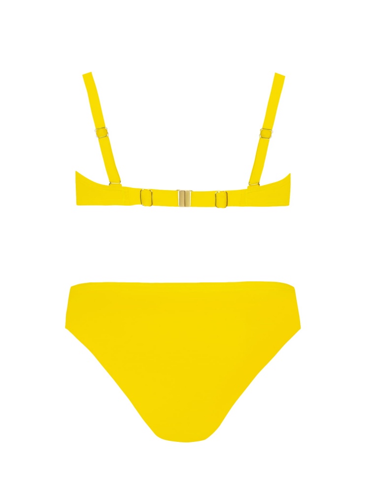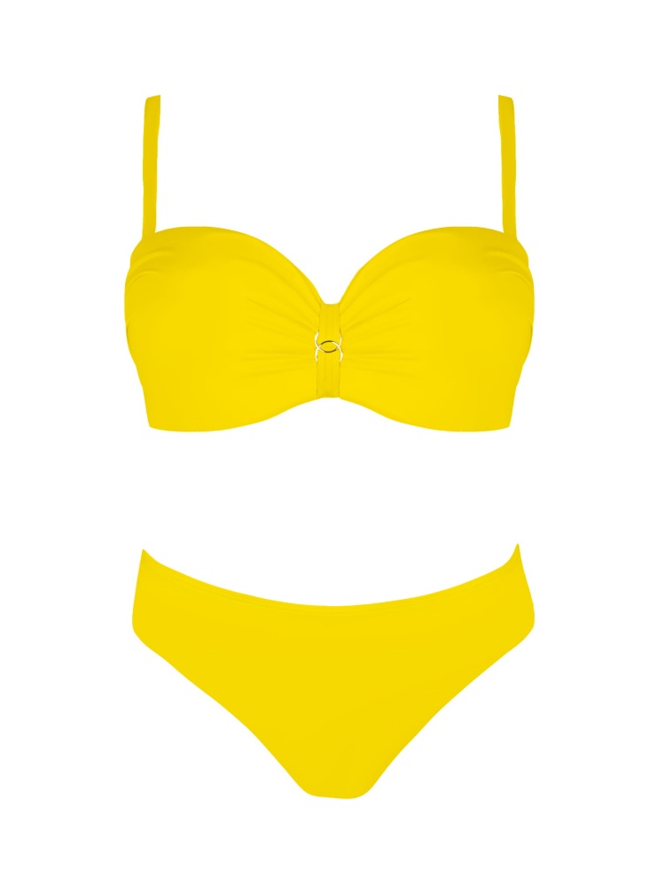 Купальник в яркой расцветке с лифом бандо и классическими плавками. Лиф с дополнительным съемным push up. Регулируемая застежка сзади. Бретели регулируемые, съемные. Фурнитура желтого цвета. Качественный материал, устойчивый к хлорированной и соленой воде, солнечным лучам и ультрафиолету.