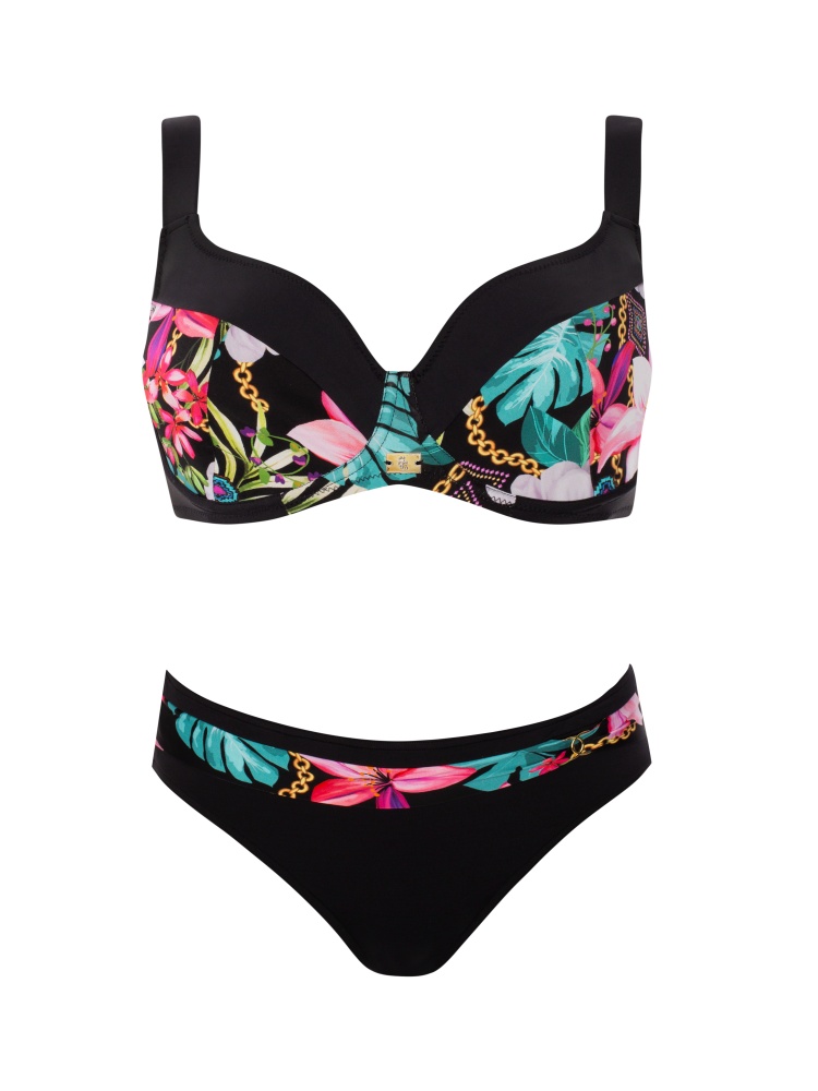 Идеальный купальник для обладательниц большой груди. Лиф на косточках, на застежке сзади. Регулируемые бретели. Плавки классические высокой посадки.